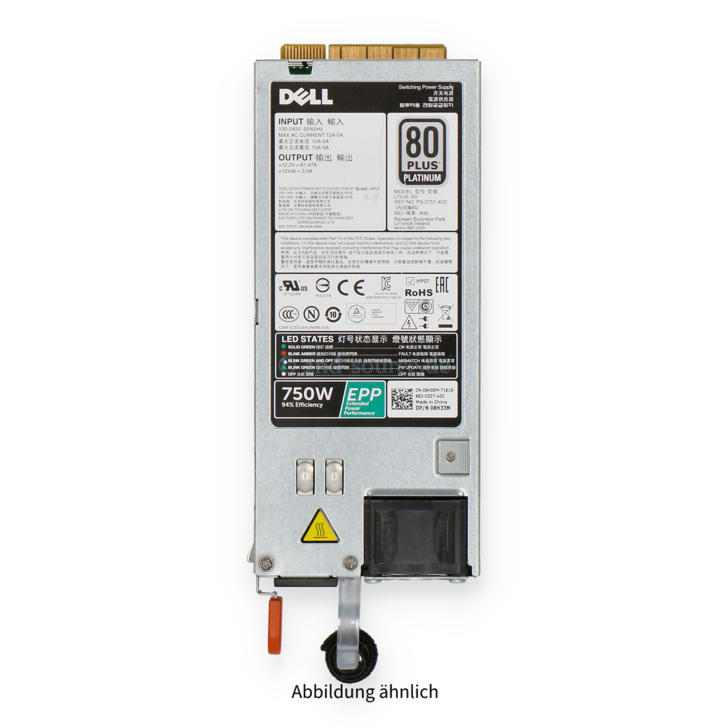 | Modell | Dell 750W 80 Plus Platinum HotPlug Power Supply |