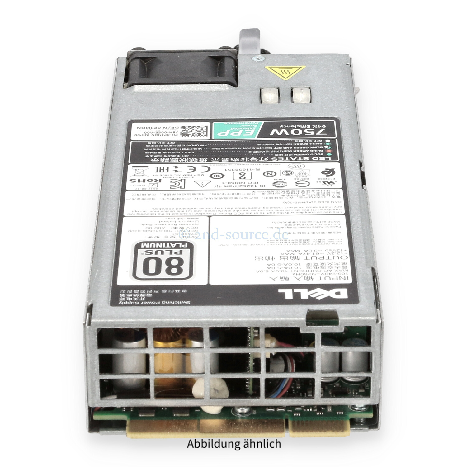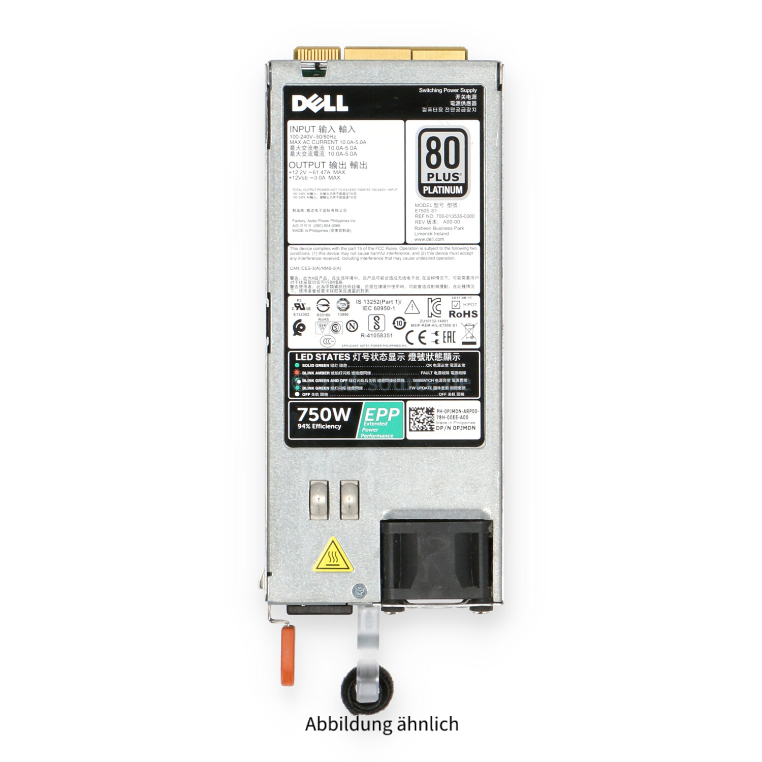 | Modell | Dell 750W 80 Plus Platinum HotPlug Power Supply |