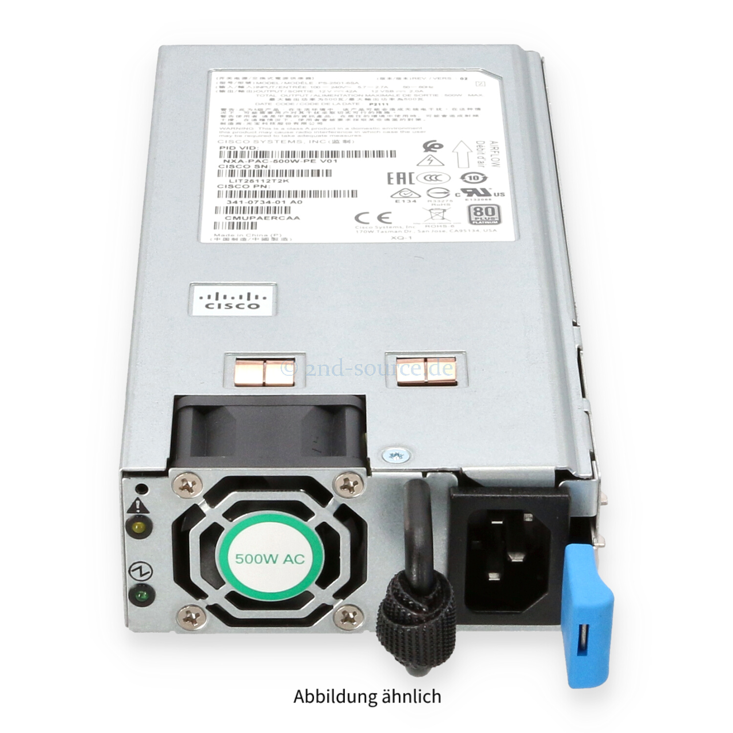 Modell Cisco 500W 80 Plus Platinum B-t-F HotPlug Power Supply