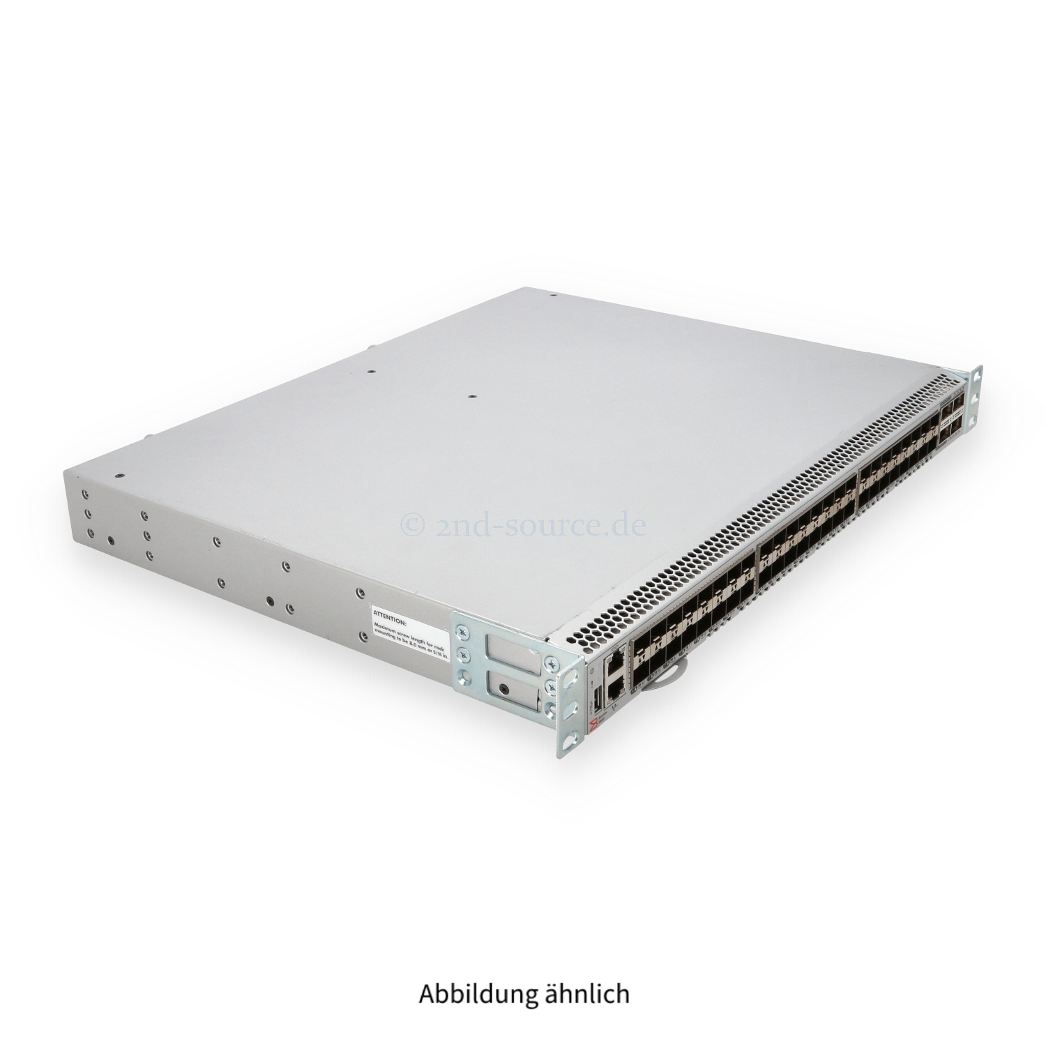 | Anschlüsse | 48x SFP+ 32Gb (24 ports active), 4x QSFP (4x32Gb), 2x RJ-45, 1x USB Type-A |