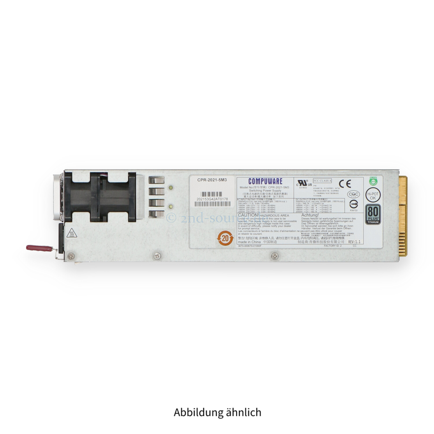 Compuware 2000W HotPlug Power Supply CPR-2021-5M3
