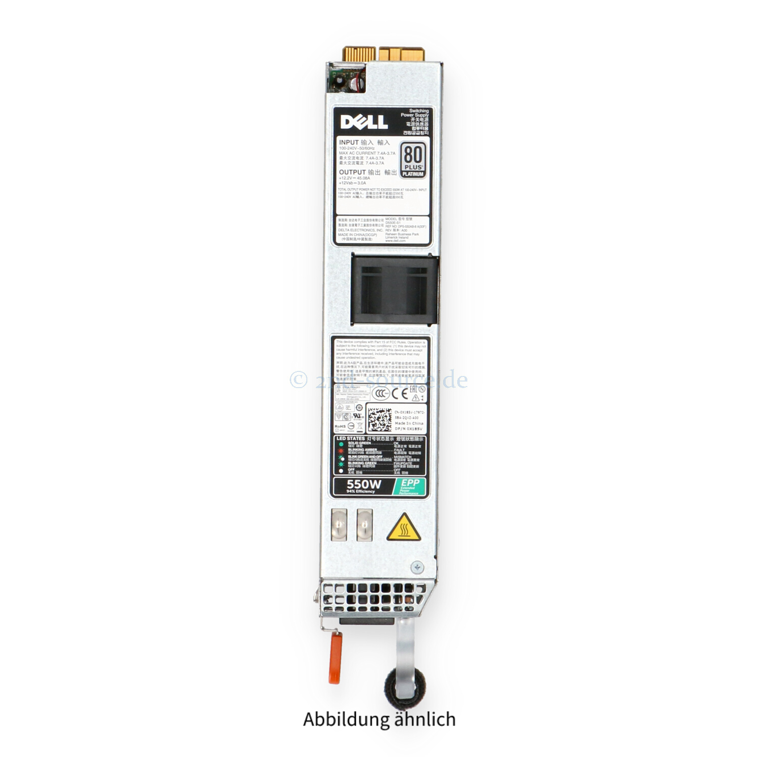 | Modell | Dell 550W Platinum 80 Plus HotPlug Power Supply |