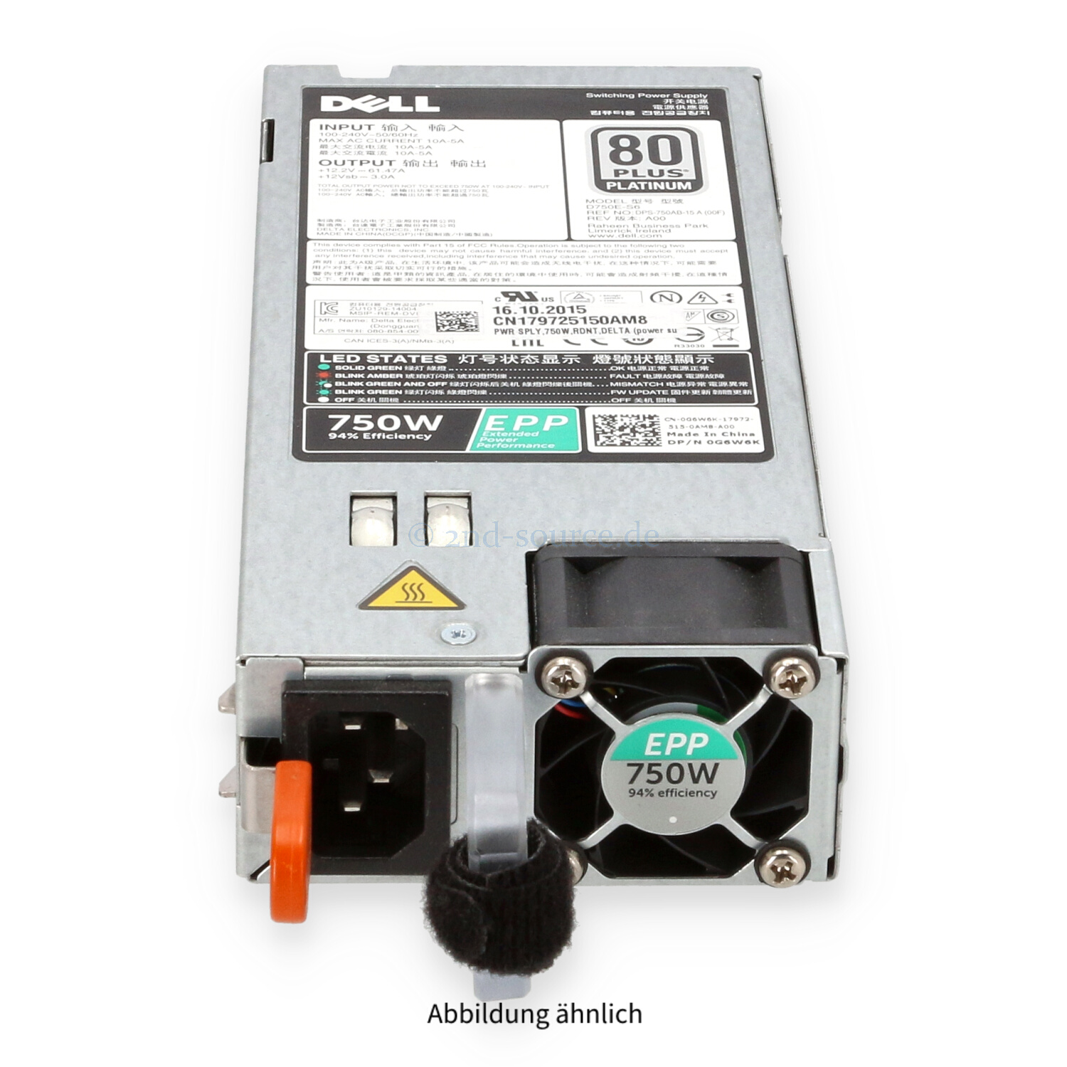 | Modell | Dell 750W 80 Plus Platinum HotPlug Power Supply |