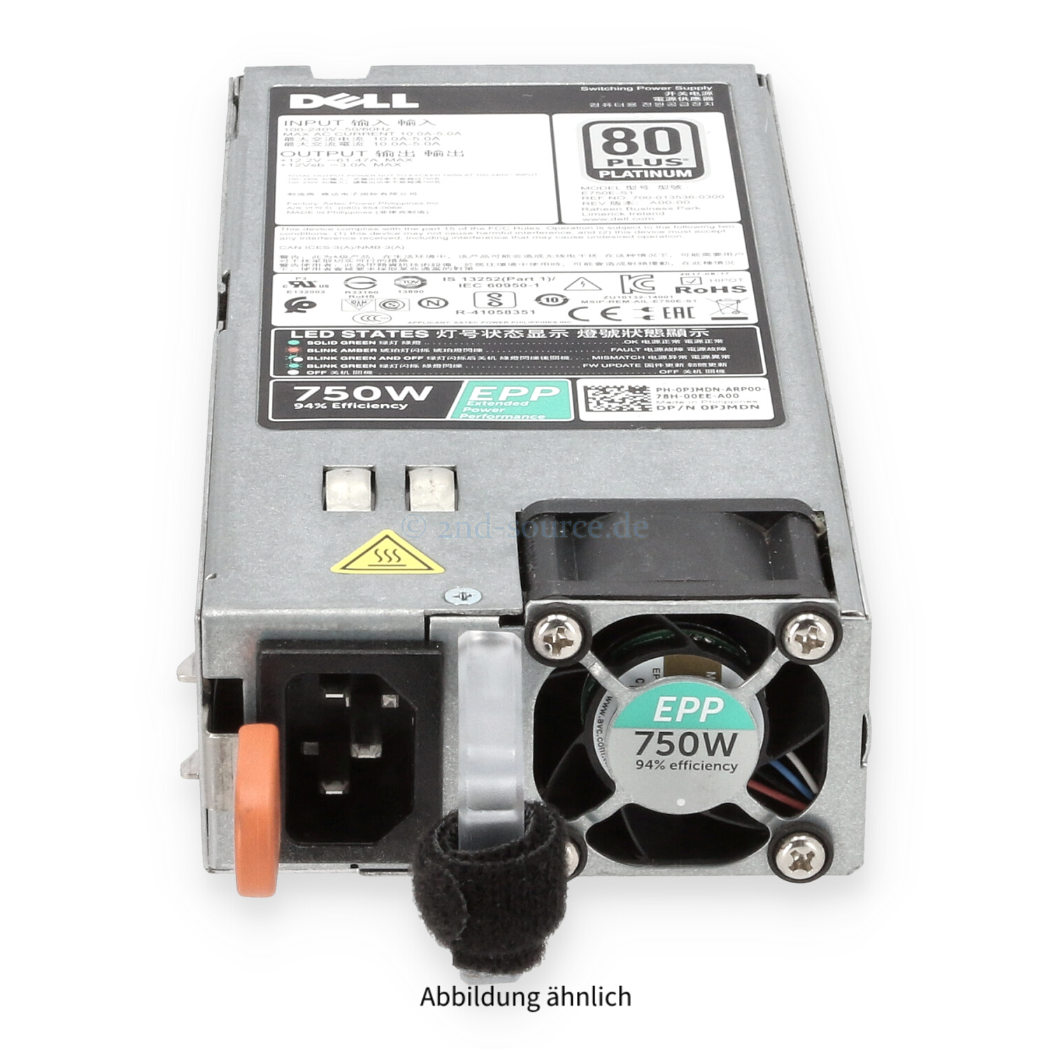 | Modell | Dell 750W 80 Plus Platinum HotPlug Power Supply |