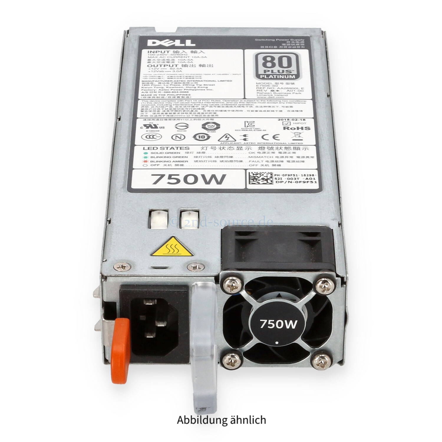 | Modell | Dell 750W 80 Plus Platinum HotPlug Power Supply PowerEdge R520 R620 R720 |