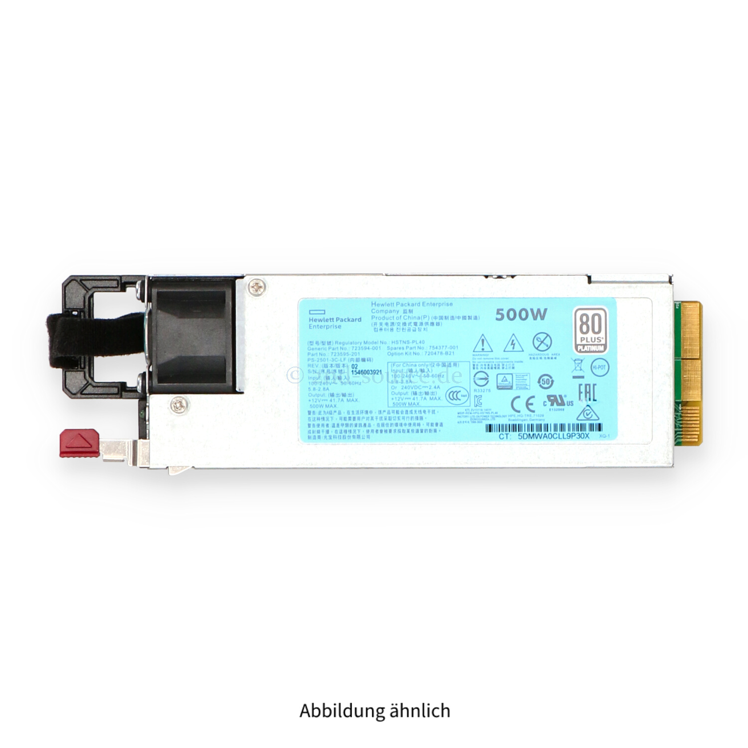 | Modell | HPE 500W 80 Plus Platinum HotPlug Power Supply G9 |