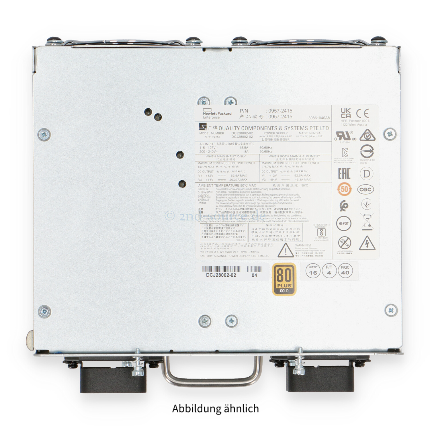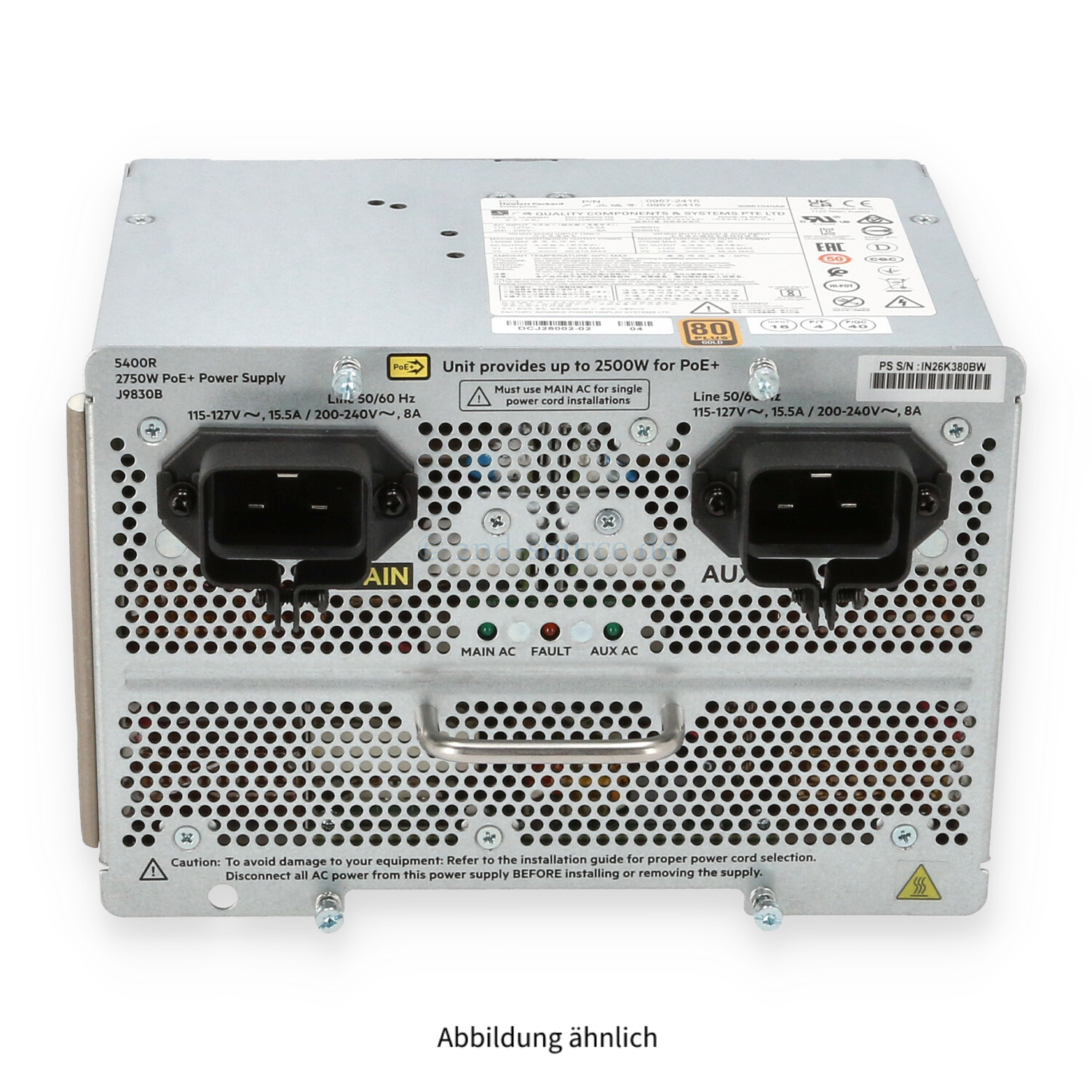 | Modell | HPE Aruba 2750W PoE+ zl2 Power Supply 5400R |