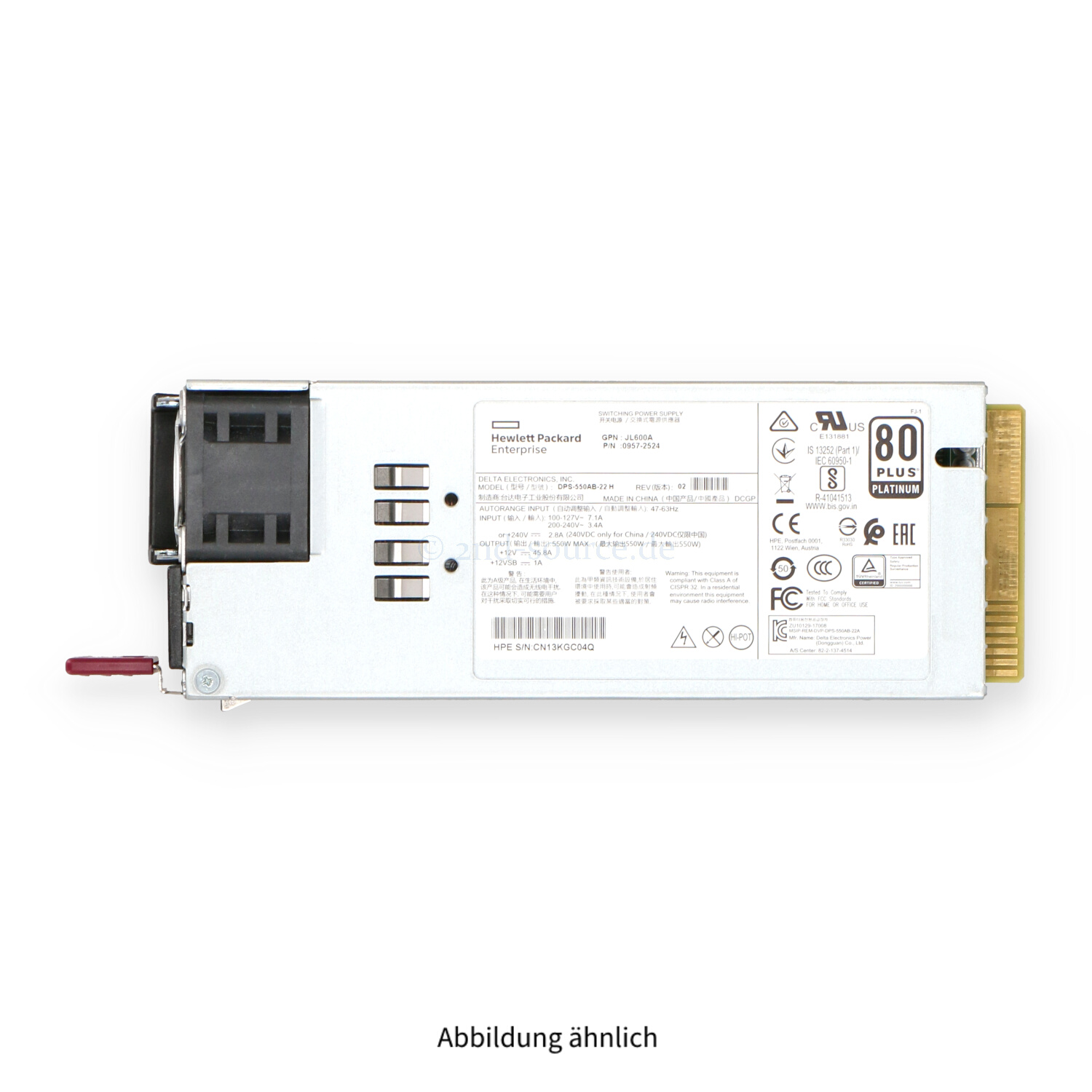 | Modell | HPE Aruba X391 550W Front to Back HotPlug Power Supply |