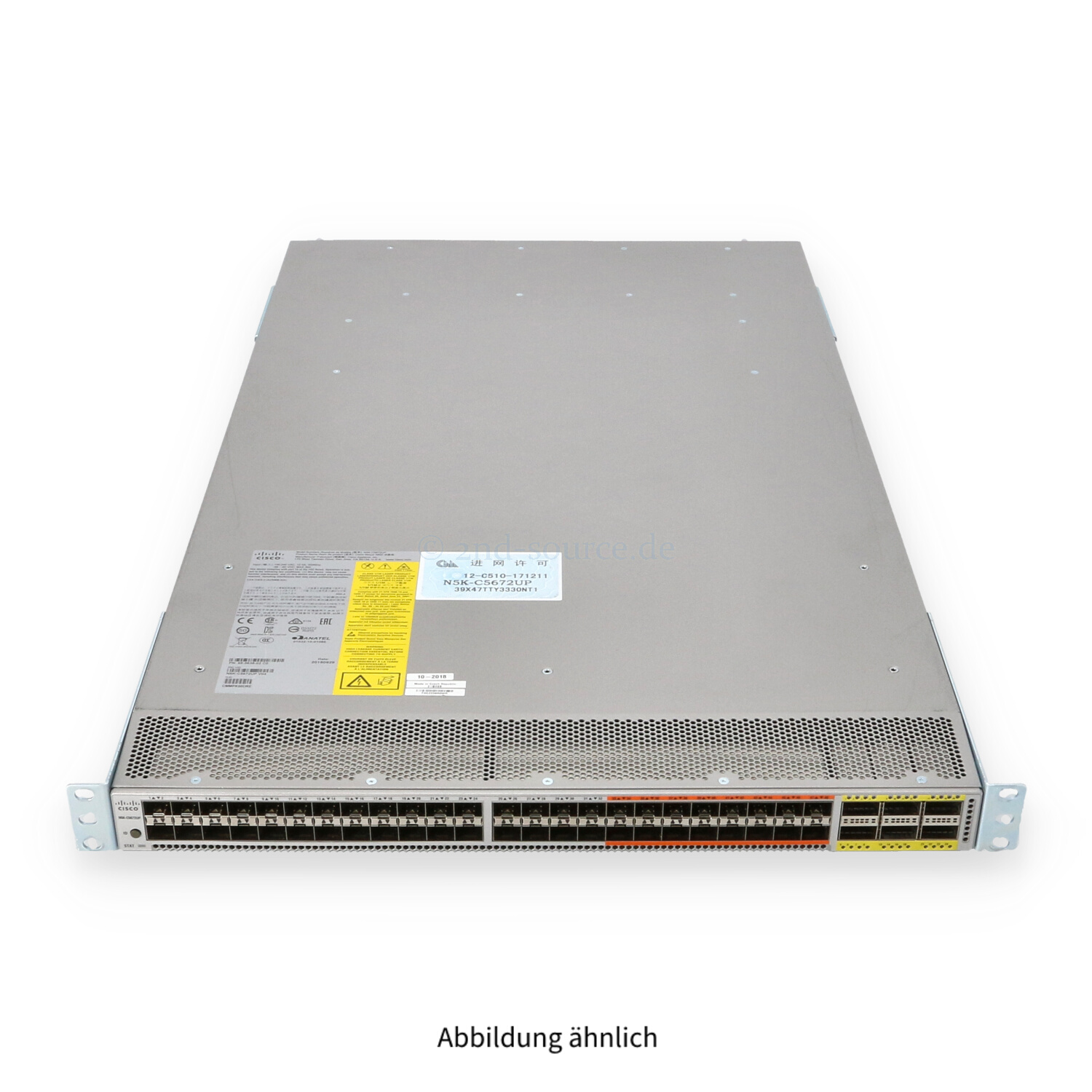 | Modell | Cisco Nexus C5672UP 32x SFP+ 10GbE 16x Unified Ports SFP+ 6x QSFP+ 40GbE 3x F-t-B 2x 1100W Managed Switch |